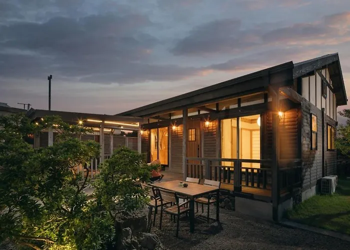 Crobe Sanbang Villa Seogwipo, located about a 10-minute drive from the Dome Leisure Town, invites guests to relax in a hot tub.